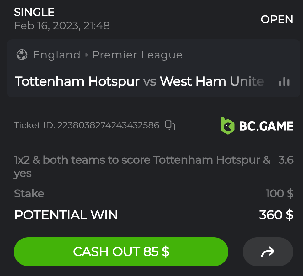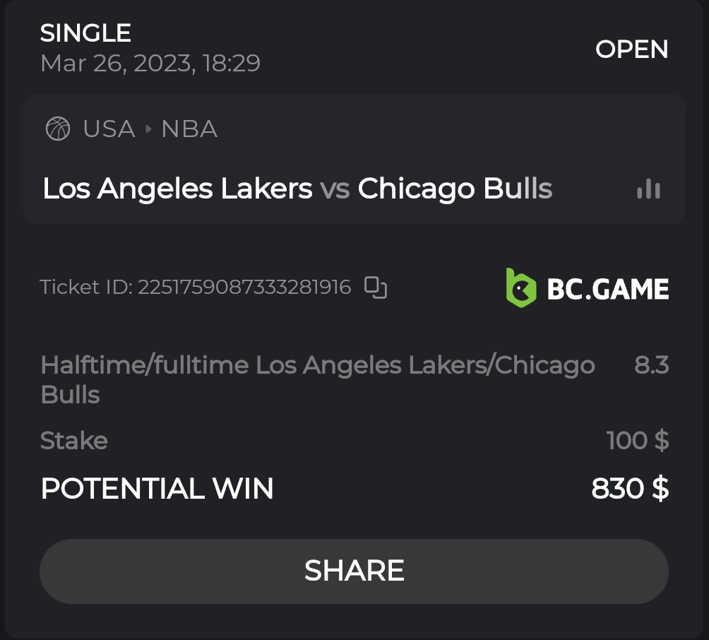 15. Ticket ID / Bet ID : 2258529849956245783