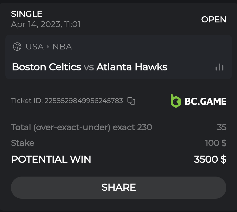 17. Ticket ID/ Bet ID : 2255019471259447751