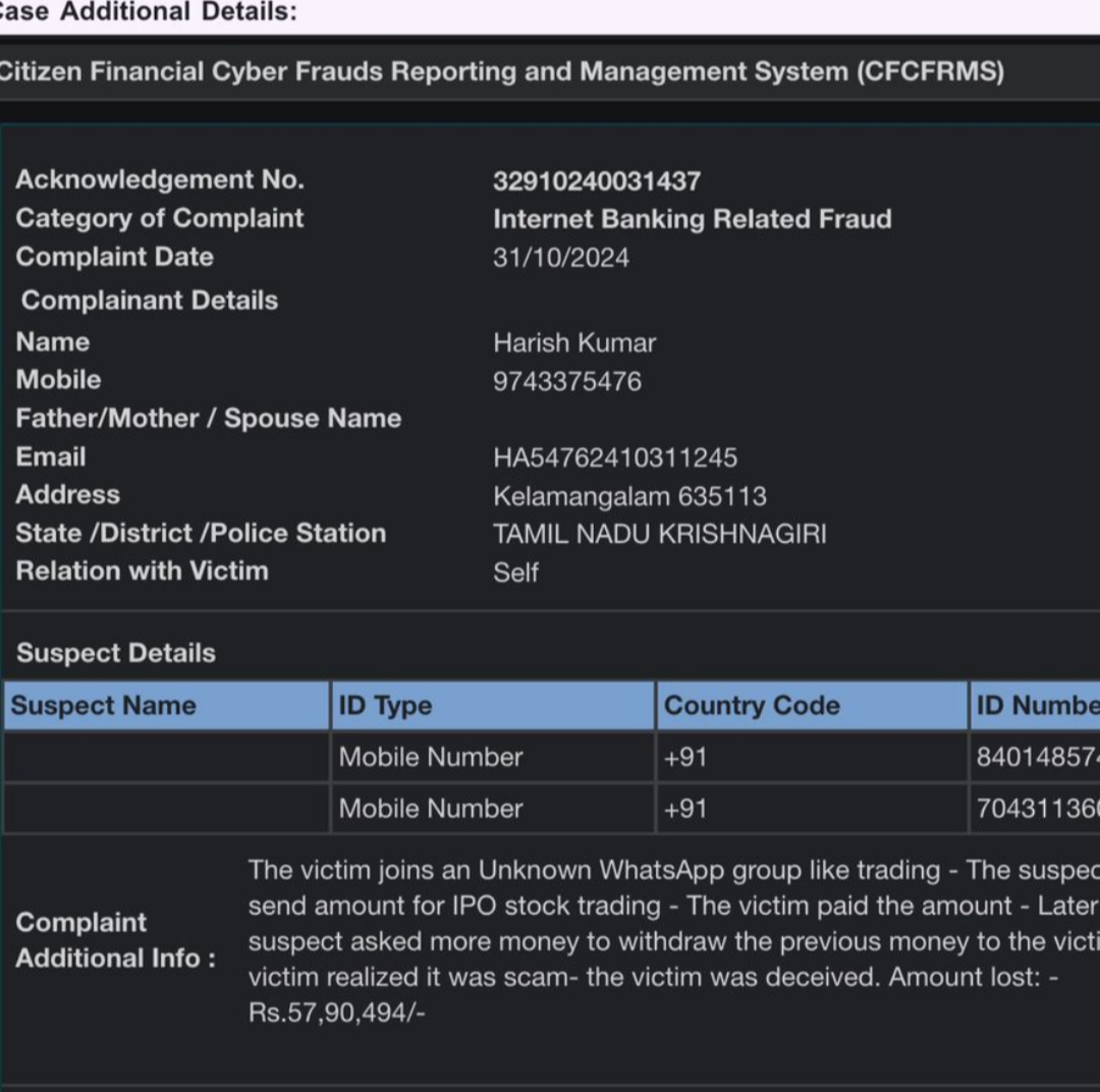 2. Case 1 Order Details: Withdraw Amount: 25000 INR Order ID: F-1847607437977800173 Status(f4): Success Fee: 0 INR Created Time: 1/11/2025, 10:19:20 pm Case 2 Order Details: Withdraw Amount: 10000 INR Order ID: F-1847607632385834428 Case 3 Order Details: Withdraw Amount: 50000 INR Order ID: F-184714 1698153024199