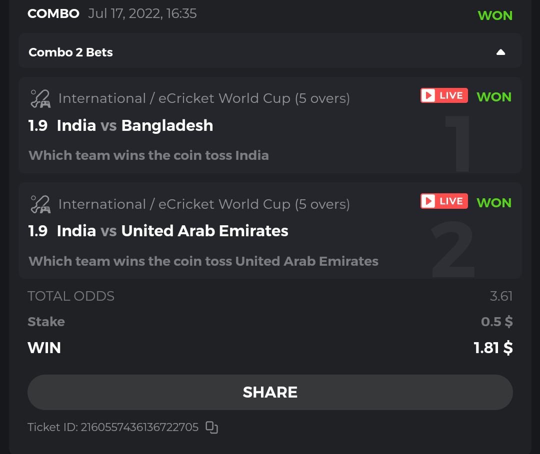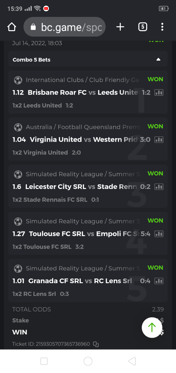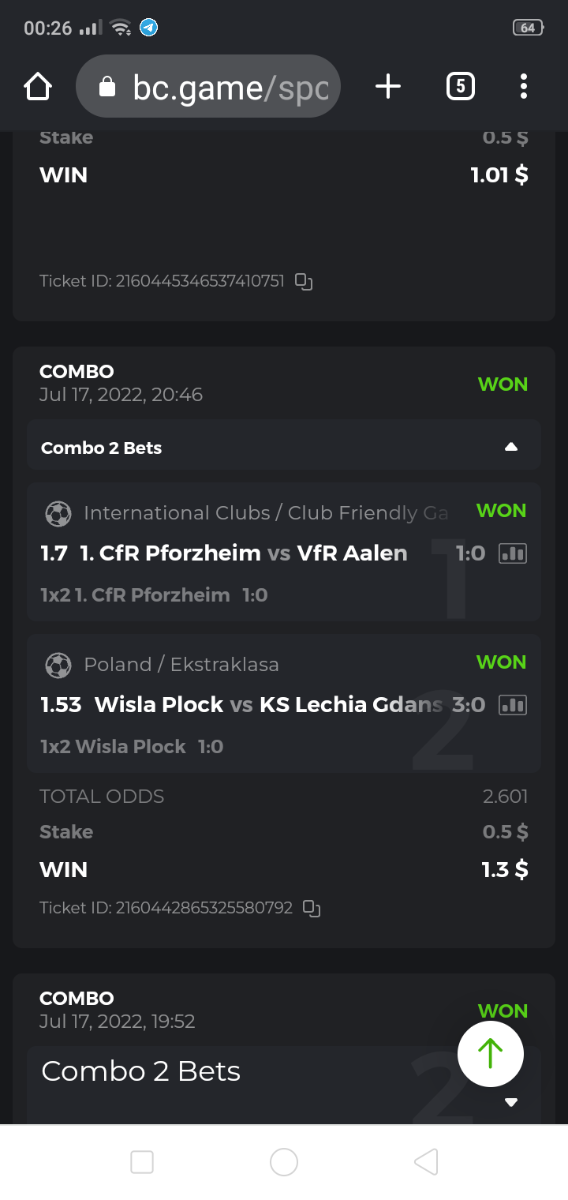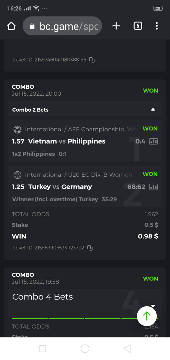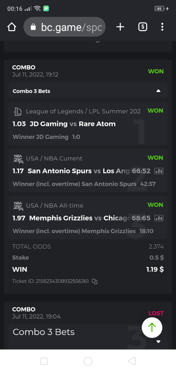 • To participate, post your Ticket ID, along with your Parlay link, as a reply to this thread as follows: Link bet: https://bc.game/sports/?bt-path=%2F%3FbtBookingCode%3D561A9D1 + Ticket ID 2126602890796736992