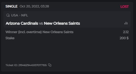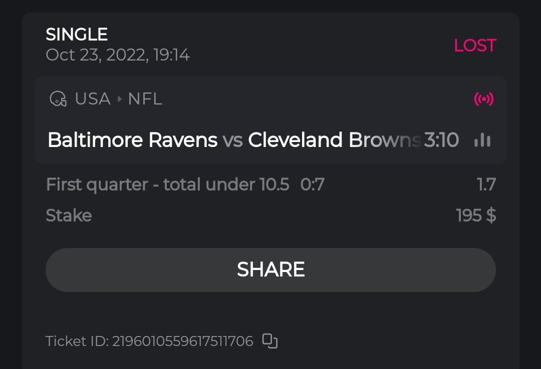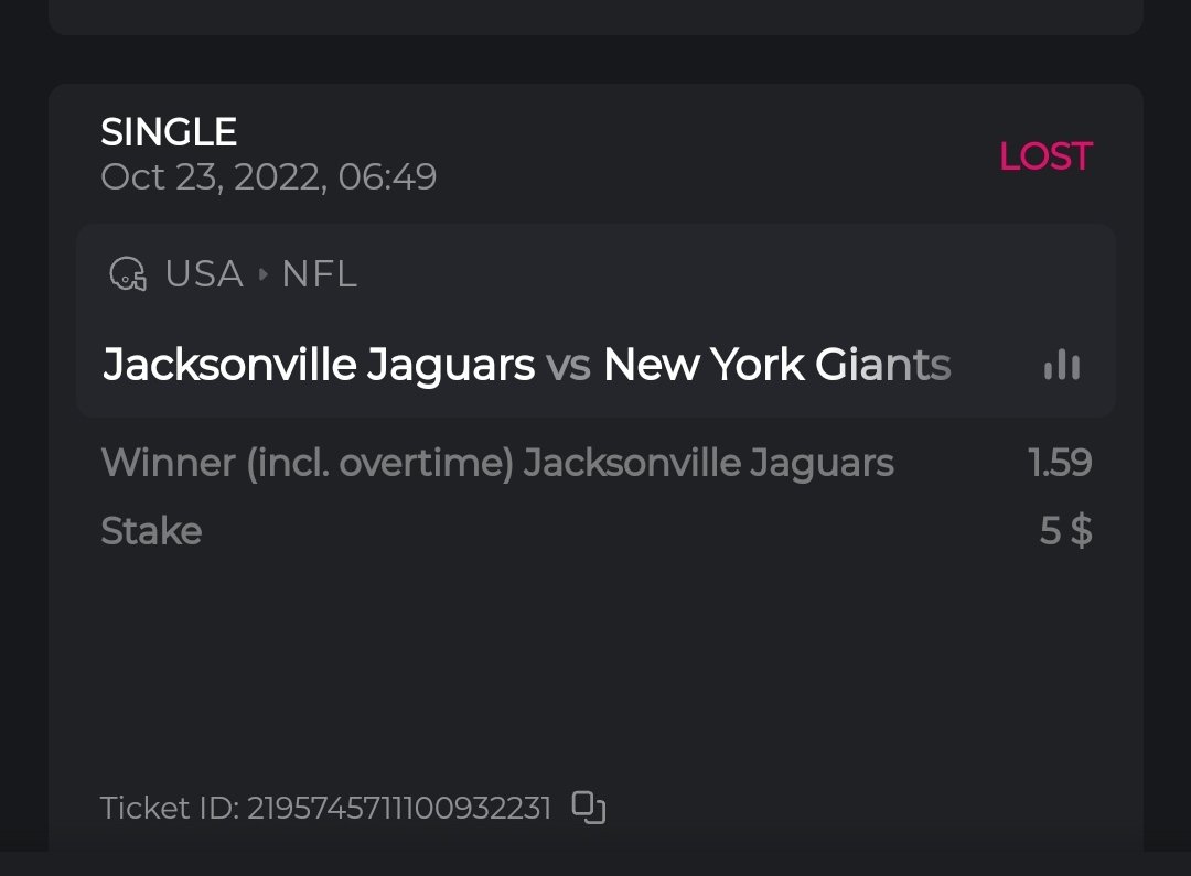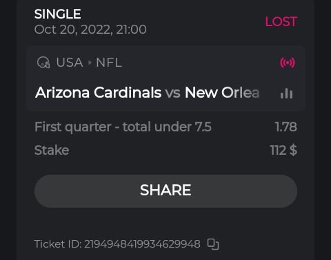 fairbee Posted October 21, 2022 Share Posted October 21, 2022 Ticket ID: 2194719461695689030 3223 TRX = $200 at the time of betting. Link to comment Share on other sites More sharing options...
