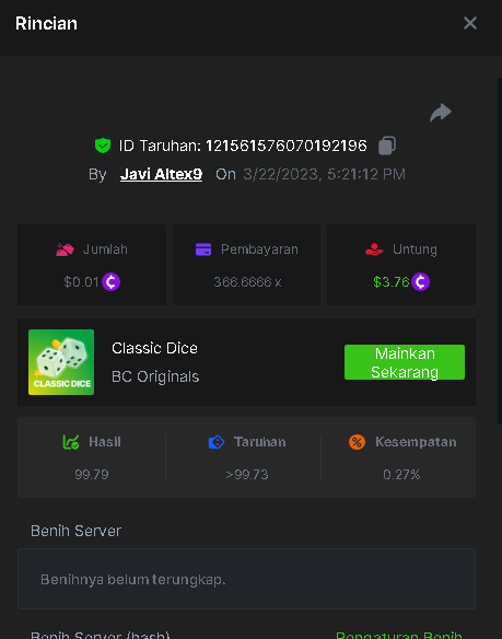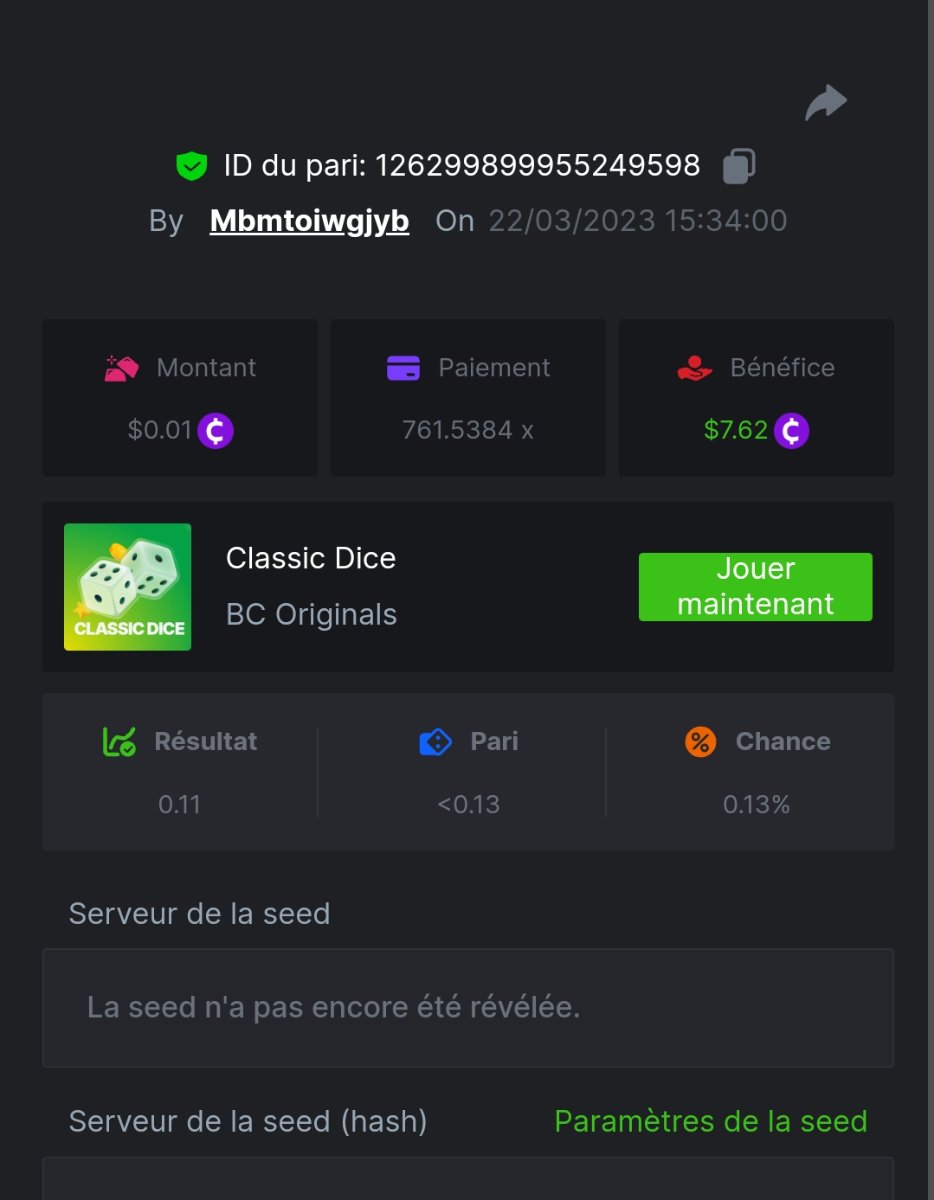 Maksypro Posted March 22, 2023 Share Posted March 22, 2023 Read Carefully Before Start To Hunt Daily Challenges #182 CLASSIC DICE Hunt : Win the highest pay out Min Payout requirement 100x Min Level 4 ๏ธDuration Starting : Now End time : 23.59 UTC Time How to Join? Make screenshot + paste your bet link + UID or Profile link Any coin, with min bet 0.01 USD is allowed (jb/bb/bcl not allowed) Reward Prizes 1st Place........$7 BCD 2nd Place.....$5 BCD 3rd Place.....$4 BCD 4th Place.....$3 BCD 5th Place.....$2 BCD ๐ต Winners will be announcing next day after Roll Point! Link to comment Share on other sites More sharing options...