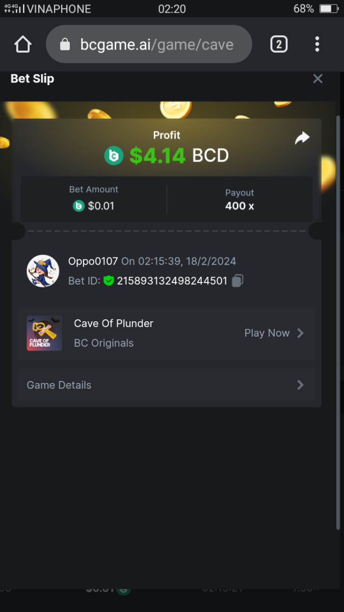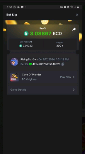 Moderator Giandreas Posted February 17, 2024 Moderator Share Posted February 17, 2024 Read Carefully Before Start To Hunt Forum Daily Challenges #513Hunt : Cave of Plunder Win the highest pay out Min Payout : x17 Min Level 10 ️Duration Starting : Now End time : 23.59 UTC Time How to Join? Make screenshot + paste your bet link + UID or Profile link Any coin, with min bet 0.01 USD is allowed (jb/bb/bcl not allowed) Reward Prizes 1st Place.....$7 BCD 2nd Place.....$5 BCD 3rd Place.....$4 BCD 4th Place.....$3 BCD 5th Place.....$2 BCD 🏵 Winners will be announcing next day after Roll Point! Link to comment Share on other sites More sharing options...
