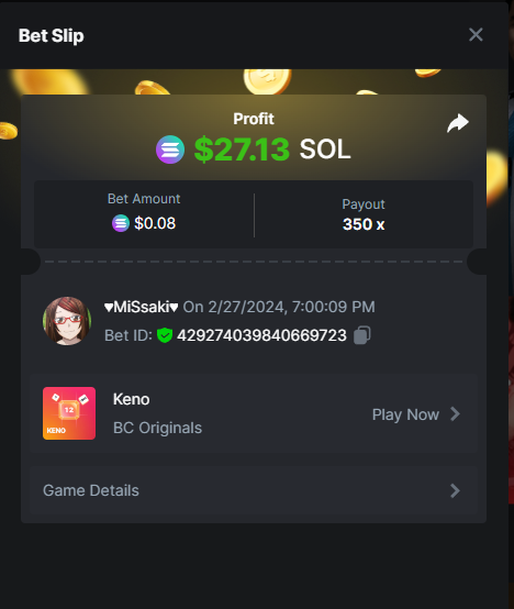 Moderator Giandreas Posted February 27, 2024 Moderator Share Posted February 27, 2024 Read Carefully Before Start To Hunt Forum Daily Challenges #523Hunt : Keno Win the highest pay out Min Payout : 90x Min Level 10️Duration Starting : Now End time : 23.59 UTC Time How to Join? Make screenshot + paste your bet link + UID or Profile link Any coin, with min bet 0.01 USD is allowed (jb/bb/bcl not allowed)Reward Prizes 1st Place.....$7 BCD 2nd Place.....$5 BCD 3rd Place.....$4 BCD 4th Place.....$3 BCD 5th Place.....$2 BCD 🏵 Winners will be announcing next day after Roll Point! Link to comment Share on other sites More sharing options...