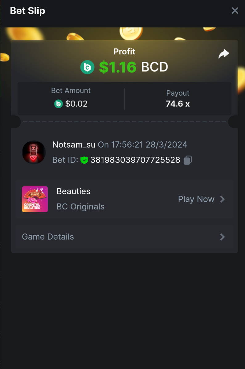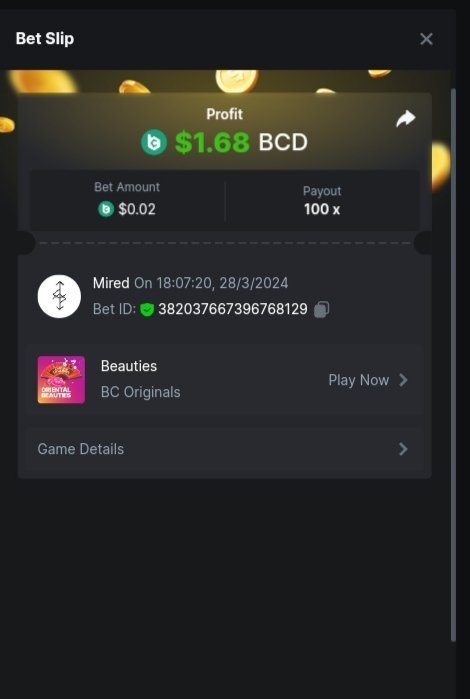 Moderator Giandreas Posted March 28, 2024 Moderator Share Posted March 28, 2024 Read Carefully Before Start To Hunt Forum Daily Challenges #553Hunt : Oriental Beauties Win the highest pay out Min Payout : 20x Min Level 10️Duration Starting : Now End time : 23.59 UTC Time How to Join? Make screenshot + paste your bet link + UID or Profile link Any coin, with min bet 0.01 USD is allowed (jb/bb/bcl not allowed)Reward Prizes 1st Place.....$7 BCD 2nd Place.....$5 BCD 3rd Place.....$4 BCD 4th Place.....$3 BCD 5th Place.....$2 BCD 🏵 Winners will be announcing next day after Roll Point! 1 Link to comment Share on other sites More sharing options...