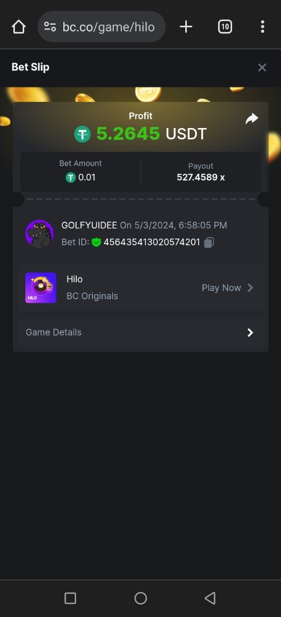 Moderator Giandreas Posted May 3, 2024 Moderator Share Posted May 3, 2024 Read Carefully Before Start To Hunt Forum Daily Challenges #589Hunt : HiLo Win the highest pay out Min Payout : x20 Min Level 10 ️Duration Starting : Now End time : 23.59 UTC Time How to Join? Make screenshot + paste your bet link + UID or Profile link Any coin, with min bet 0.01 USD is allowed (jb/bb/bcl not allowed) Reward Prizes 1st Place.....$7 BCD 2nd Place.....$5 BCD 3rd Place.....$4 BCD 4th Place.....$3 BCD 5th Place.....$2 BCD 🏵 Winners will be announcing next day after Roll Point! 1 Link to comment Share on other sites More sharing options...