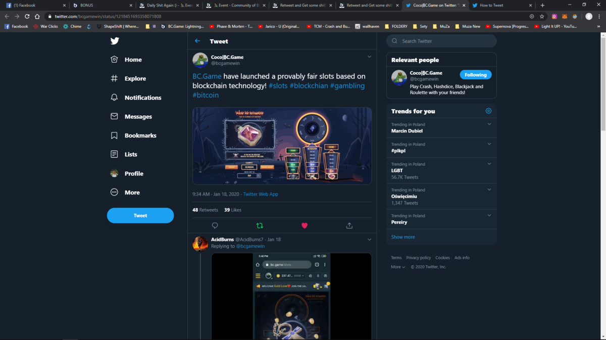 Dizz420 Posted January 27, 2020 Share Posted January 27, 2020 https://mobile.twitter.com/bcgamewin/status/1218451693358071808 can I get some coin coco Link to comment Share on other sites More sharing options...