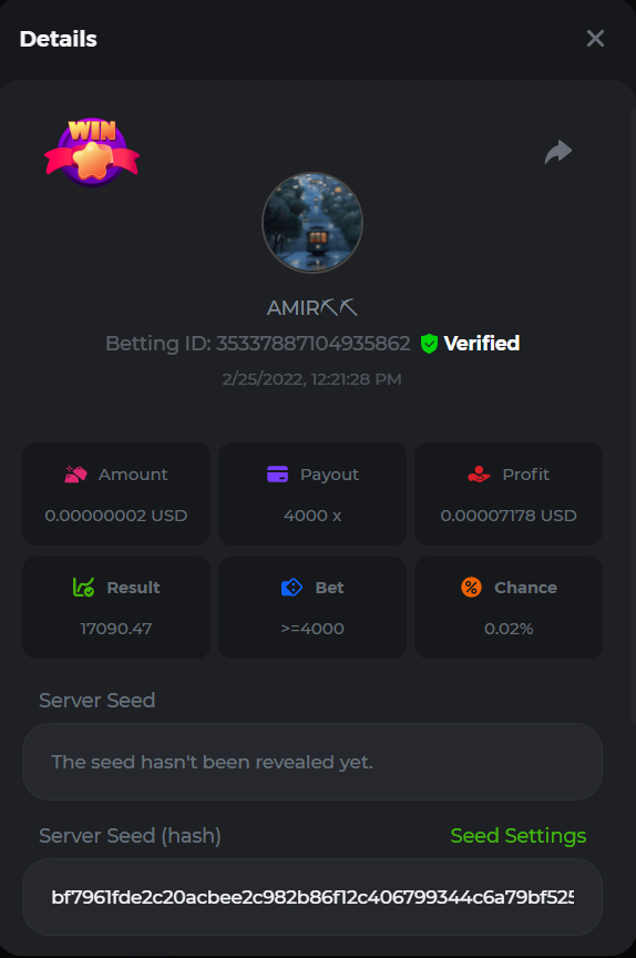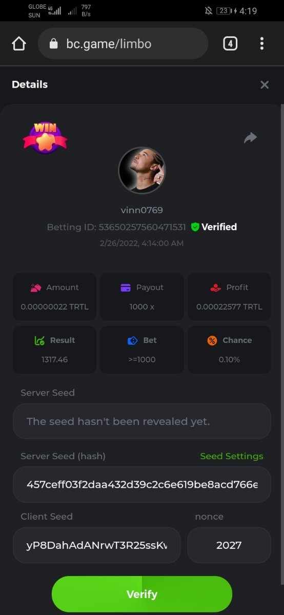 BC_Morningstar Posted February 25, 2022 Share Posted February 25, 2022 Please look at this my target payout is 256000 but look what payout i got i hope thats counted and the profit still give the 256000x so its counted 256000x - https://bc.game/sd/?sd=10F3W93VM9ZLZN 500x - https://bc.game/sd/?sd=10F446BK2C53PV 1000x - https://bc.game/sd/?sd=10F52YAQ9CFAC3 2000x - https://bc.game/sd/?sd=10F5315UJY8ZDF Link to comment Share on other sites More sharing options...
